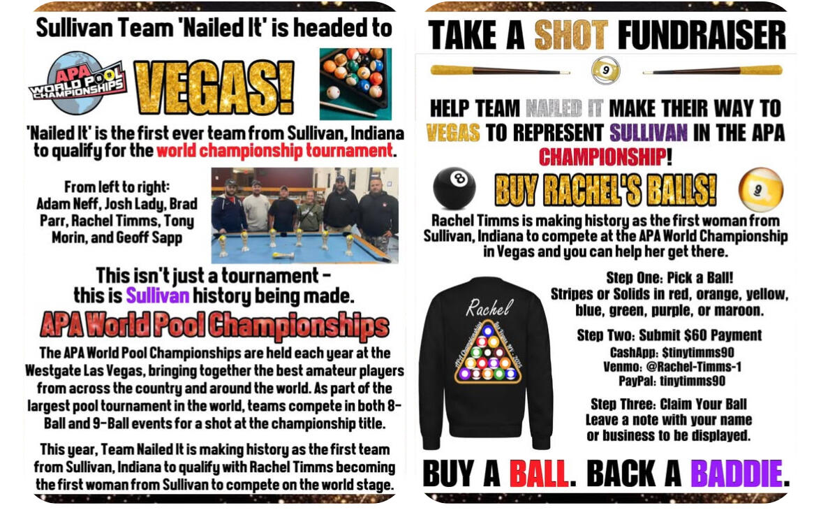 And to add milestoneses on milestones: Rachel Timms is officially the first woman from Sullivan to ever compete on the world stage. 🏆So buy a ball. Support a baddie. Pretend you totally care about a sport with no bleachers, helmets, or marching bands (yet). ✨#NailedIt #APAChampionship #SullivanGoesToVegas #TakeTimeToCareAboutOtherSports #SullivanHistory