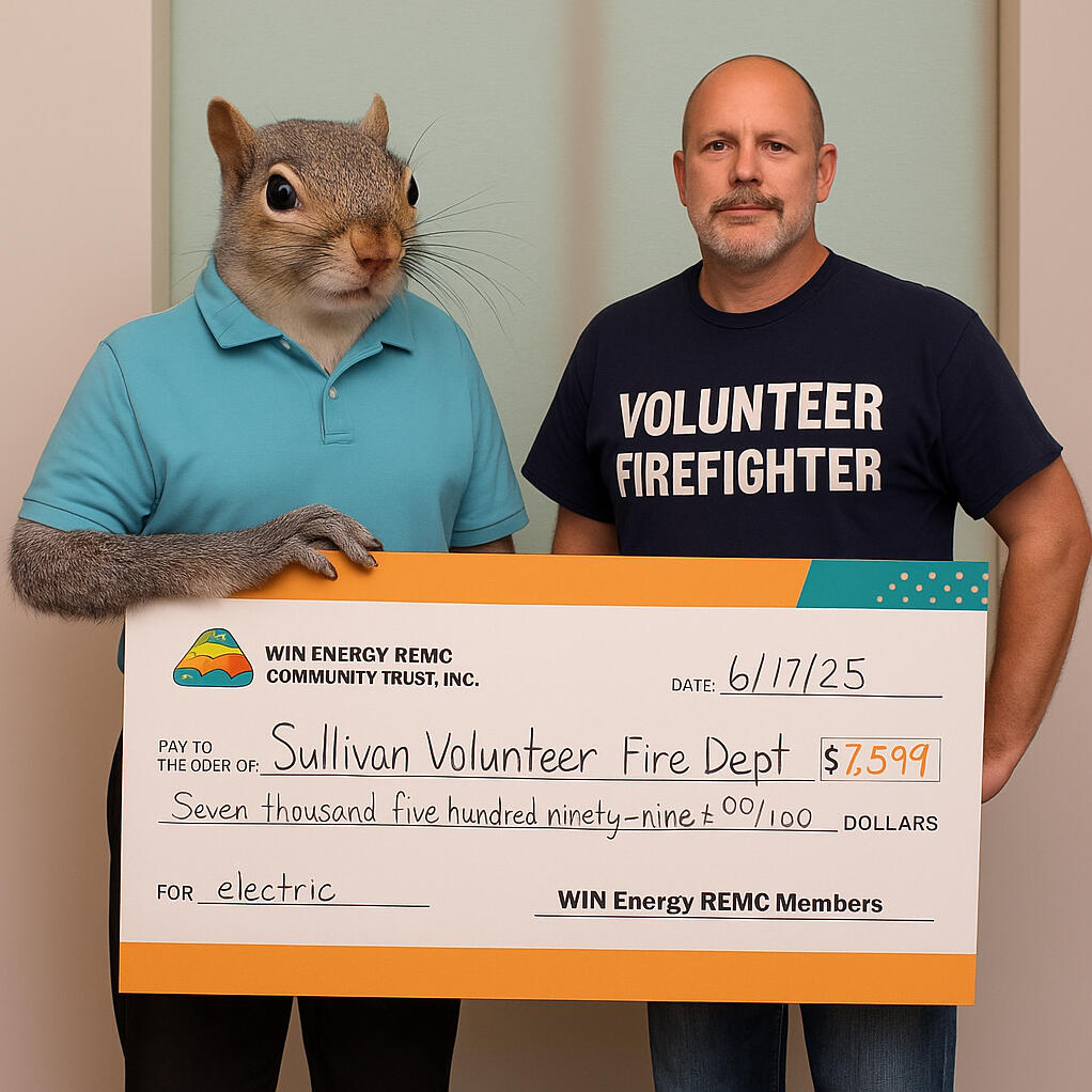 Thank you to the WIN Energy REMC Board for their generous $7,599 donation to the newly renamed Sullivan City Volunteer Fire Department!Now, some may say “$7,599 isn’t much,” but luckily, with no more full-time staff using electricity 24/7, that should easily cover a whole year of power before we inevitably close down our station and park the firetrucks in that empty lot where the hotel was going to go. 🚒And sure, one more dollar would’ve made it a nice, even number, but who needs money, or paychecks, or financial security for their family? Not our one volunteer firefighter!#TakeTimetoVolunteer #BudgetFriendlyHero #RunningACityIsSoEasy #SullivanIndiana #SatiricalParody